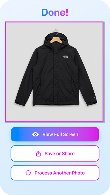 The all-in-one studio for resellers and brands. Unwrinkle clothes, create ghost mannequins, and generate professional model shots in one tap.